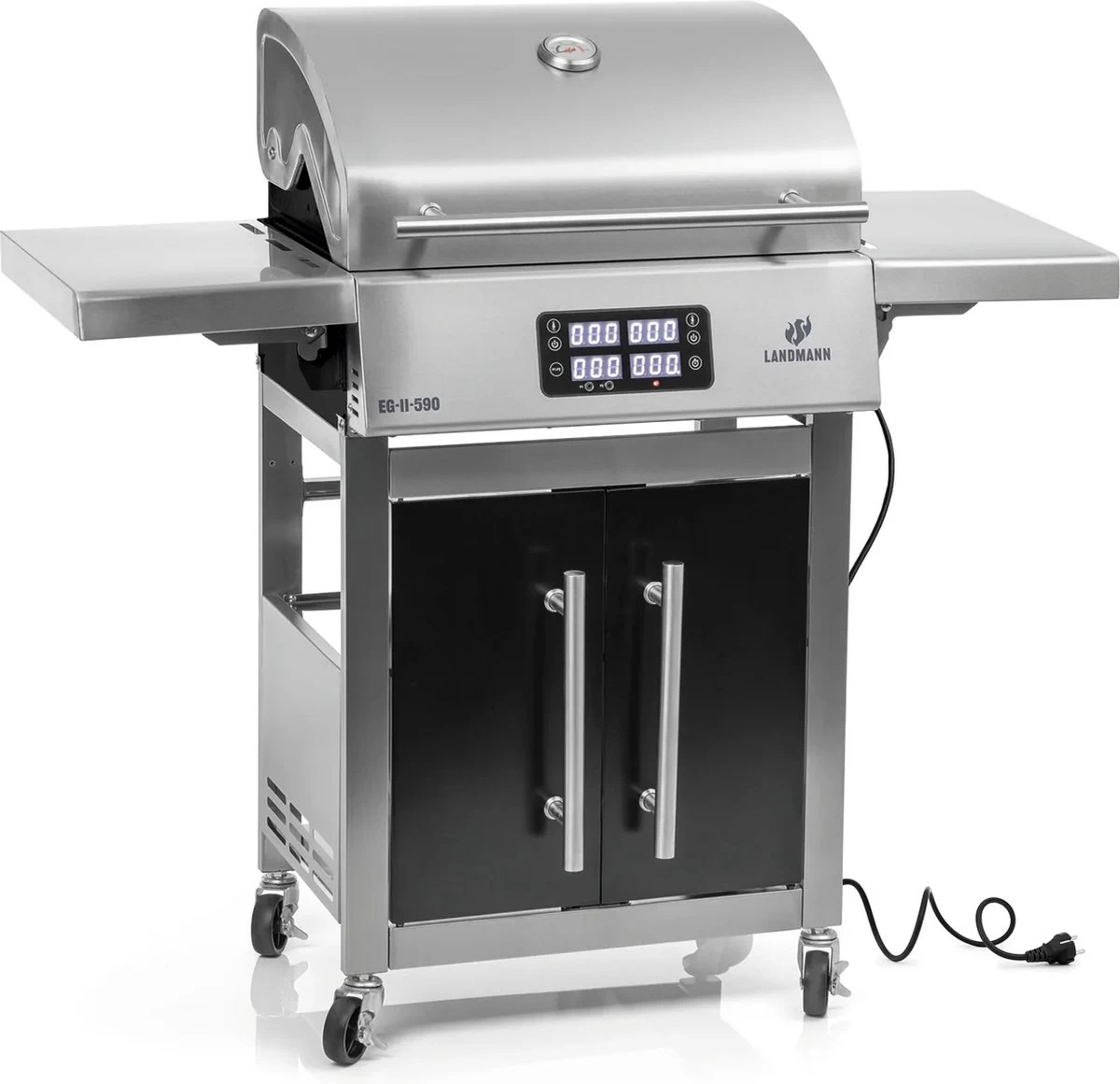 BBQ électrique Landmann E-grill Chariot Argent | Zwart – Avec Thermomètre Intégré – Avec écran Tactile – Avec étagères Latérales – Couvercle Refermable