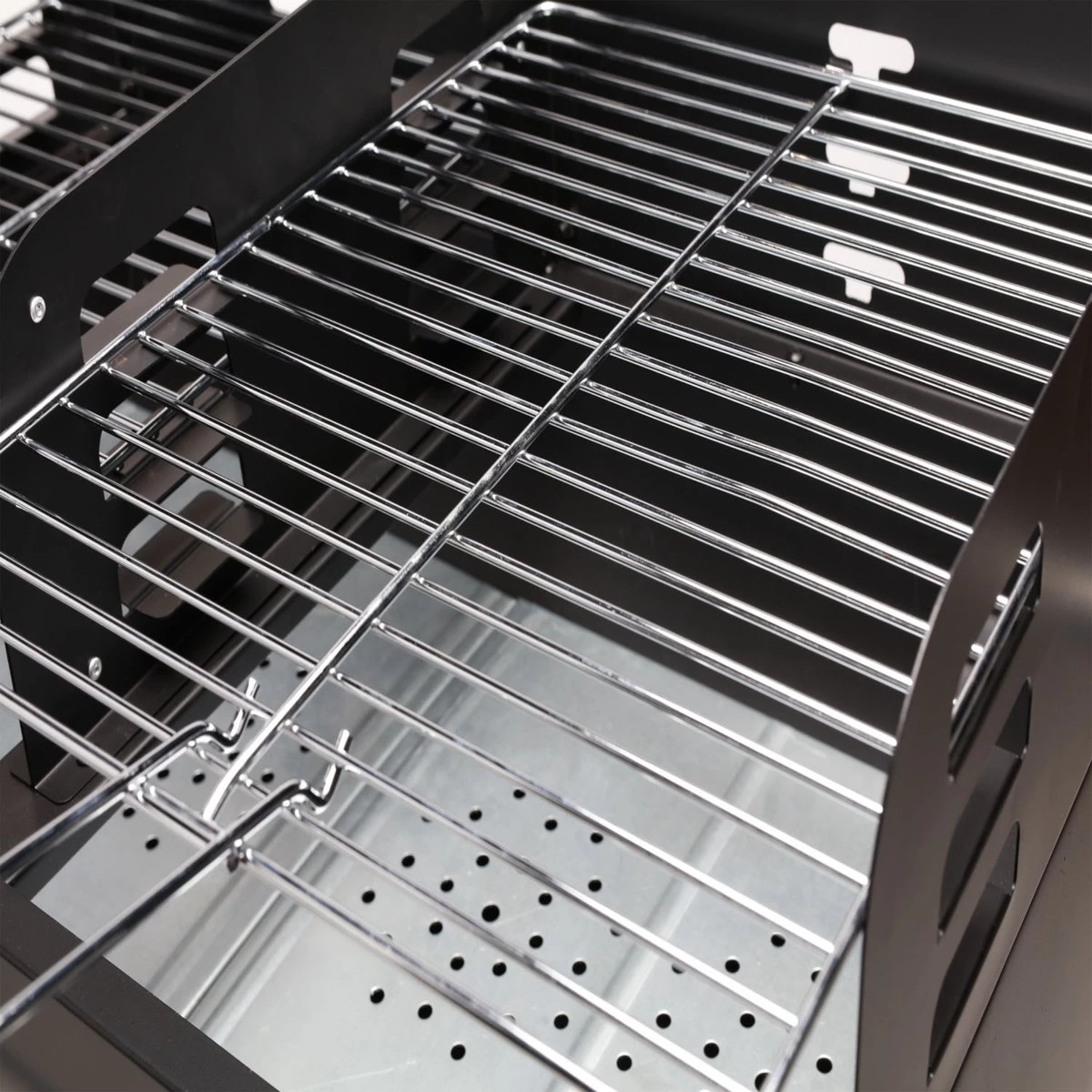 - CUISSON FACILE : Avec ce barbecue vous avez la garantie que vos aliments sont cuits à la bonne température grâce aux deux zones de cuisson équipées de grilles de cuisson réglables en hauteur.