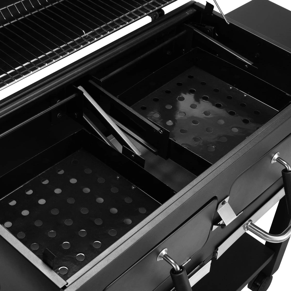 - FACILE À DÉMARRER : Ce BBQ dispose de 2 grilles de feu réglables en hauteur indépendantes pour le charbon de bois. Les grilles de charbon de bois sont conçues avec de petits trous qui offrent une meilleure ventilation et permettent aux cendres de tomber dans les récupérateurs de cendres.
