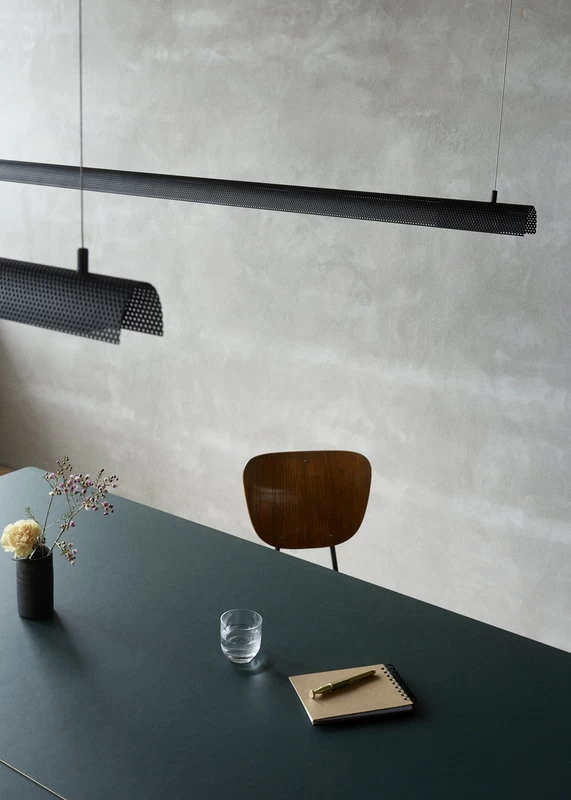 La suspension Radent de NUAD est fabriquée en acier et en aluminium perforés. Ce luminaire discret offre une lumière directe vers le bas, mais grâce à sa construction, la lumière est également filtrée vers le haut à travers la maille métallique incurvée. Simple et discret, le modèle Radent est idéal pour les espaces de bureaux modernes ainsi que pour les maisons privées, placé au-dessus des tables de salle à manger ou des îlots de cuisine. La lampe de style industriel est également facile à envisager dans les hôtels, les restaurants et les bars.