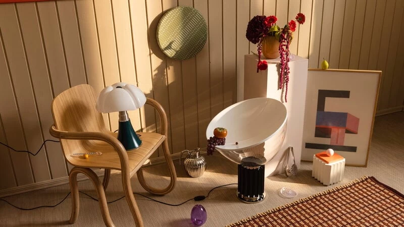 Le poster Freddo de Nathalie Du Pasquier présente des formes géométriques associées à des teintes audacieuses et originales. Les éléments abstraits forment une structure, qu’il ne serait toutefois pas possible de construire en trois dimensions. Les coups de pinceau visibles sur les blocs de couleur ajoutent de la profondeur au poster et montrent clairement que l’œuvre originale, malgré sa géométrie précise, n’a pas été créée numériquement.