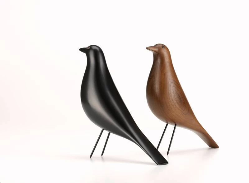 L’un des objets décoratifs les plus appréciés dans la maison de Charles et Ray Eames était un oiseau en bois connu sous le nom de Eames House Bird. On peut voir l’oiseau sur de nombreuses photos du célèbre couple de designers et il a même fait son apparition sur une affiche commerciale des chaises Eames. L’oiseau en bois original était une pièce d’art populaire des Appalaches, que Charles et Ray Eames avaient trouvée lors de leurs voyages. Fabriqué par Vitra, l’Eames House Bird de couleur marron est fabriqué en noyer laqué avec des pieds en fil d’acier.