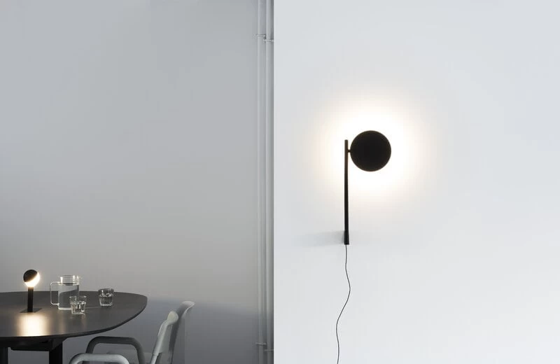Conçue par Sam Hecht et Kim Colin, l’applique Pastille de Wästberg se compose d’un abat-jour en forme de disque et d’un pied fin avec un variateur d’intensité tactile dissimulé au sommet. Bien que le matériau du luminaire ressemble à du métal peint, il s’agit en fait de biopolyamide, un bioplastique d’origine végétale et recyclable fabriqué à partir d’huile de ricin.